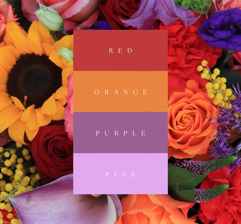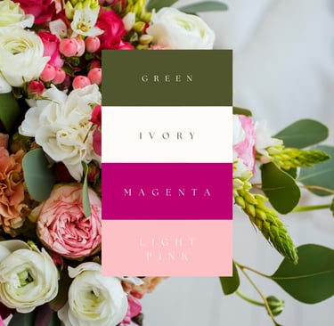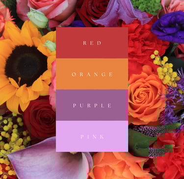 Here are some ideas of colors and textures you can request for your order. Please keep in mind that some flowers may be out of season at the time of ordering, but I'll always do my best to get you what you're looking for!