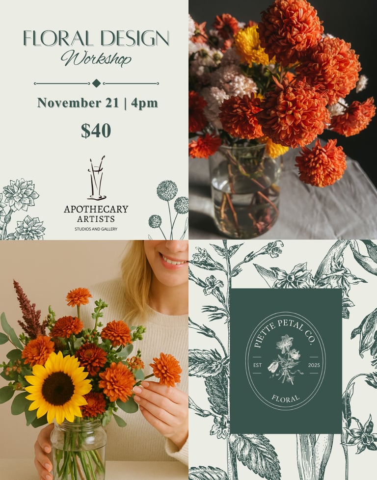 Piette Petal Co. will be there taking Thanksgiving flower pre-orders! There will be 2 options available: